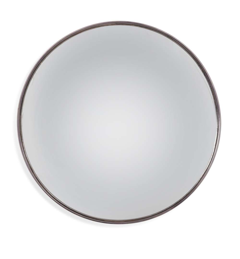 Silver Convex Wall Mirror features a rounded antique nickel frame with a convex clear glass mirror. Weight: 36 LBS. Mirror Glass Dimension: 39'. Finish: antique black nickel. Material: metal, clear glass mirror. Wall Mounting: Two "D" ring attachment points for ease of access wall mounting included to hang mirror. The hand crafted details produced by a skilled artist lends itself to a unique technique and will vary slightly.