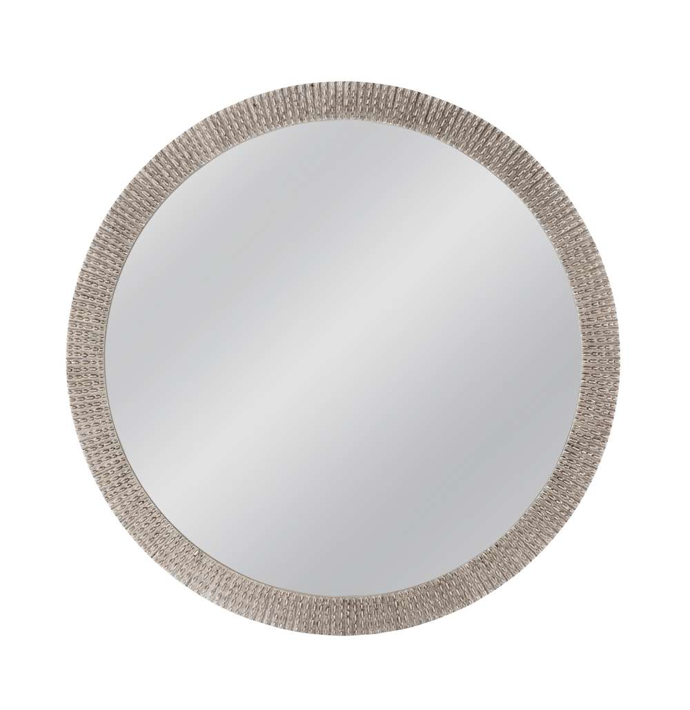 The Beatrice Wall Mirror showcases a round textured patterned frame, adorned with an antique silver leaf finish. Its intricate design adds sophistication to any space. With meticulous craftsmanship, this mirror elevates your decor with timeless elegance.